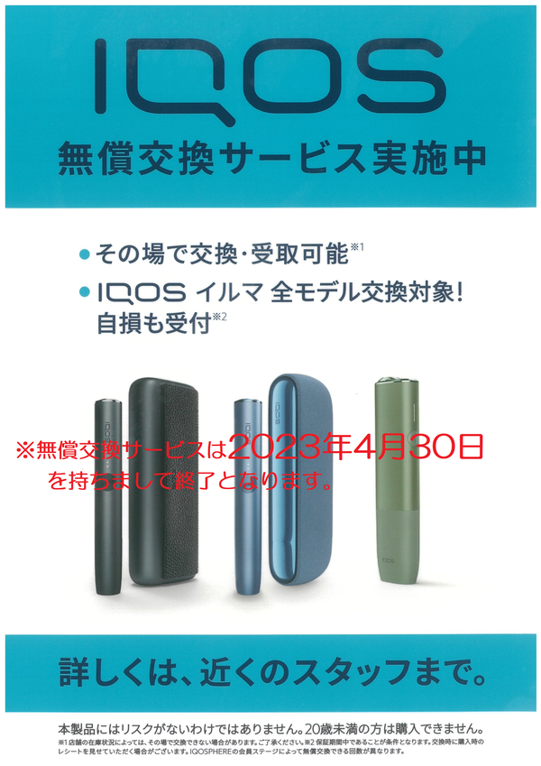 アイコス・ILUMA無償交換終了のお知らせ